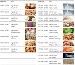 Megnevezés: szelektív gyorsteszt élelmiszerallergének kimutatására