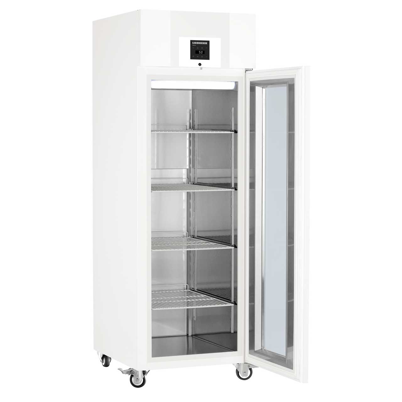A Liebherr gyógyszeripari hűtőszekrényeiben bármikor biztonságosan, nagy mennyiségben tárolhatók minőségi készítmények, érzékeny gyógyszerek. Ez a precíz elektronikus vezérlésnek, a rendkívül hatásos szigetelésnek, az optimalizált kényszer-légbefúvásos hűtési rendszernek, valamint az első osztályú kidolgozásnak köszönhető. Az esetleges hőmérsékleti kilengésekre fény- és hangjelzés figyelmeztet.